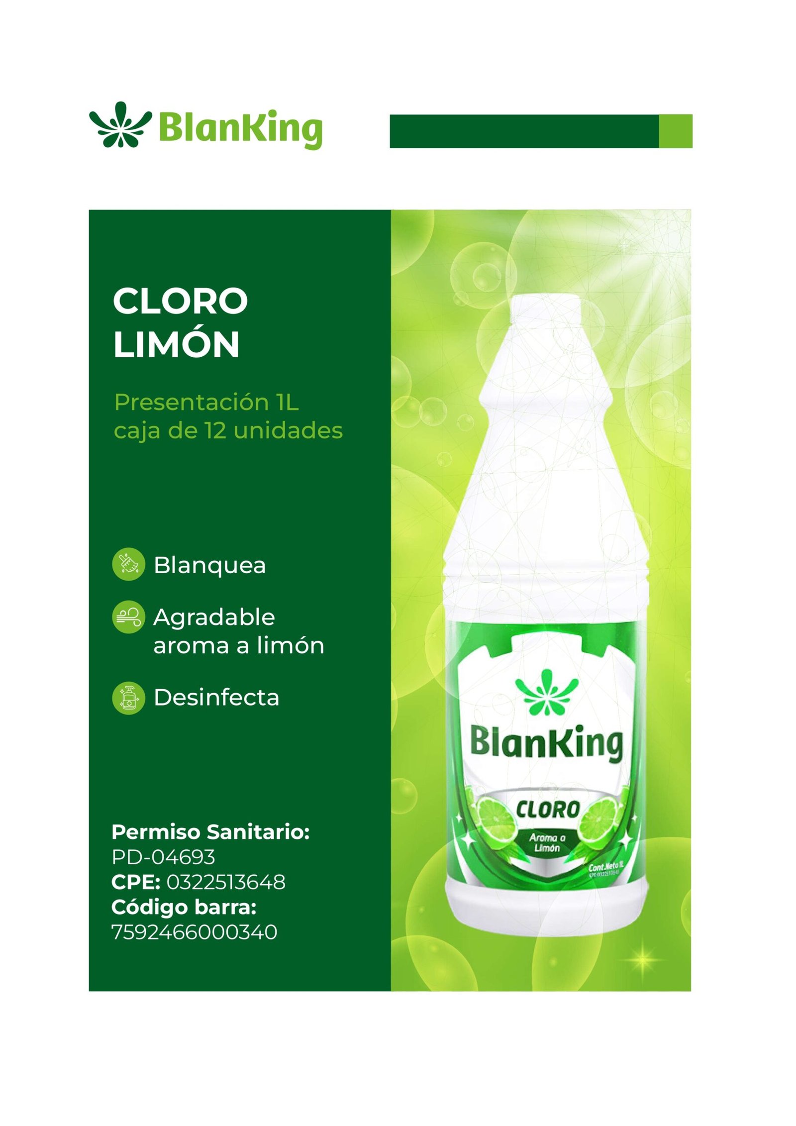 Caja Cloro Limón 1 Litro 12 unidades